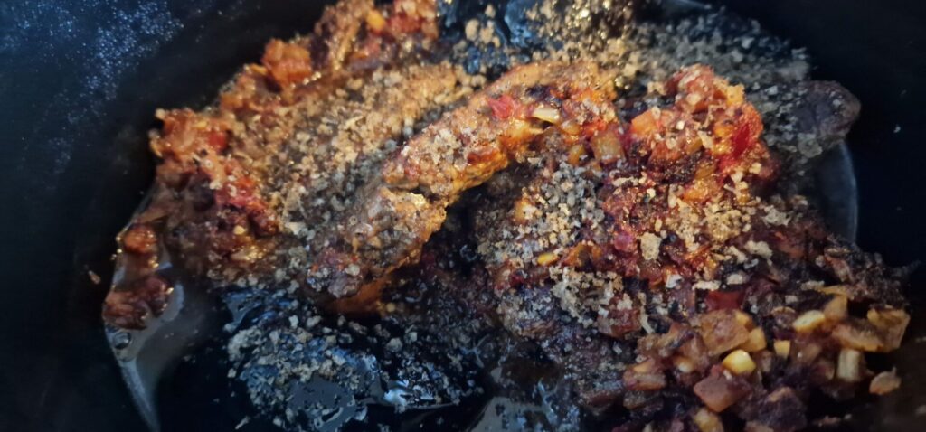 Roer af en toe en kijk of je genoeg vocht over hebt, bijvullen metals nodig is kan altijd, zet je slowcooker op een kiertje open zodat er water kan ontsnappen als je graag een iets meer gebonden maaltijd wil.